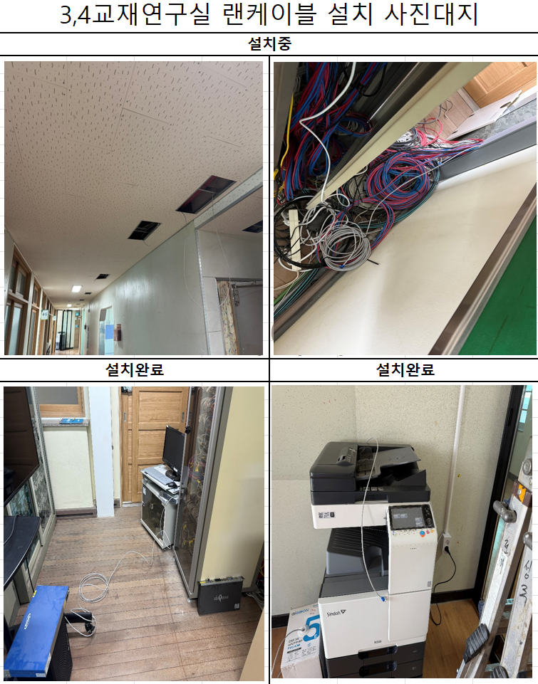 환경개선사업을 하면서 교재연구실 랜 케이블을 정보실부터 교재연구실까지 신설하였습니다.